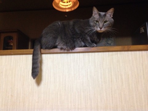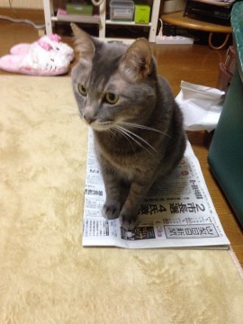 ?テーブル、キッチン、新聞の上、コタツの中が好き。
