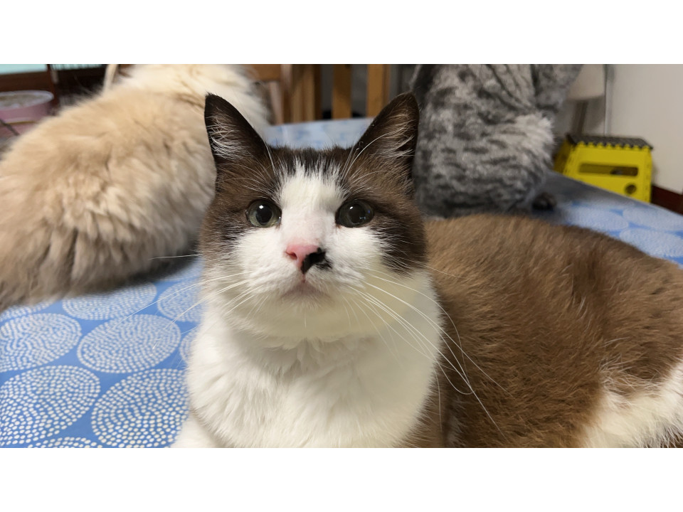 鼻のところにホクロみたいに茶色の毛があります