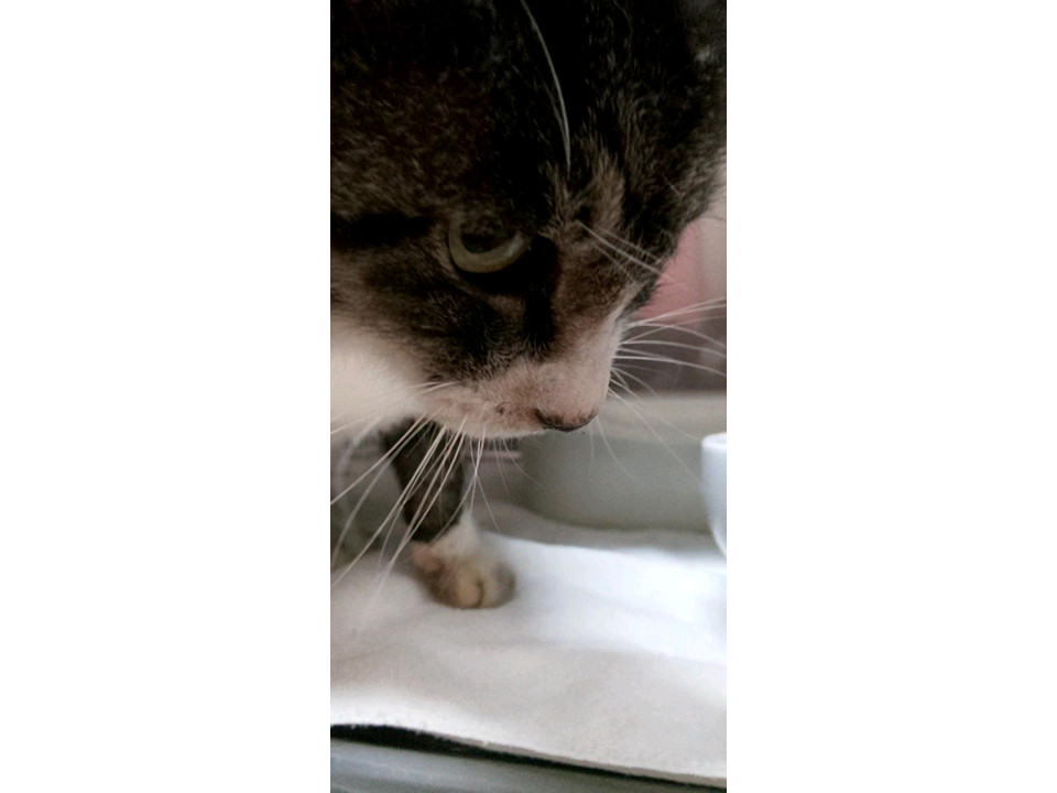 高齢猫。オス。去勢済み。歯がなし。重度腎不全で余命は1~2週間。