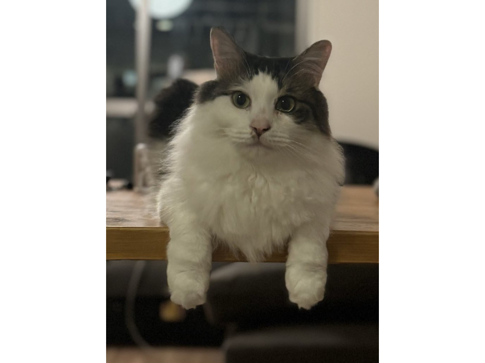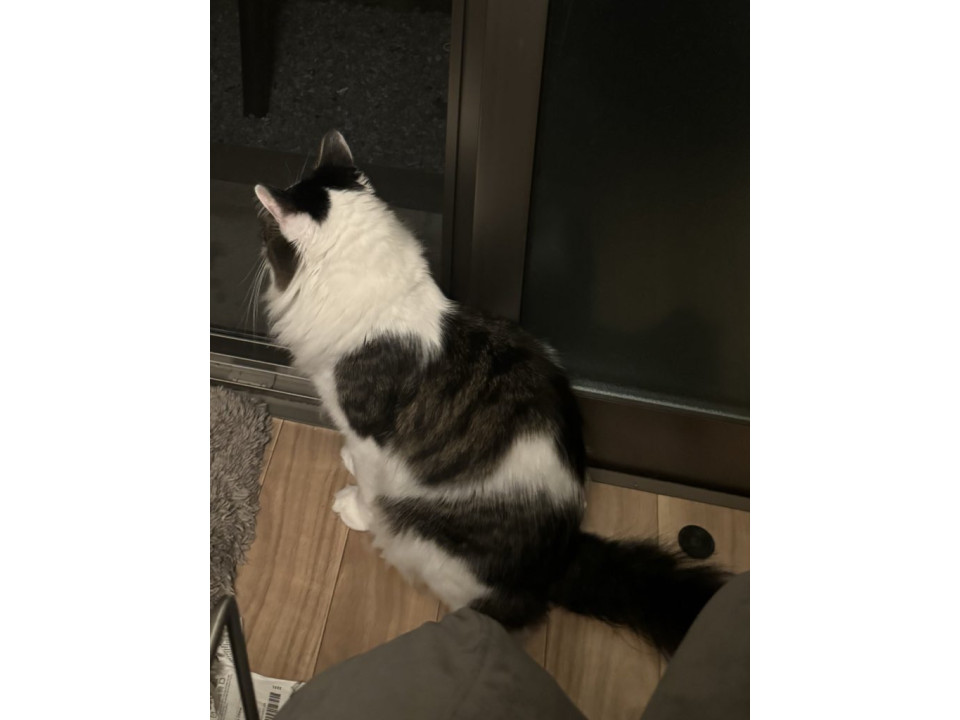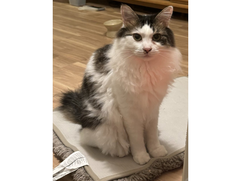 長毛 キジ白のような模様 ハチワレ柄