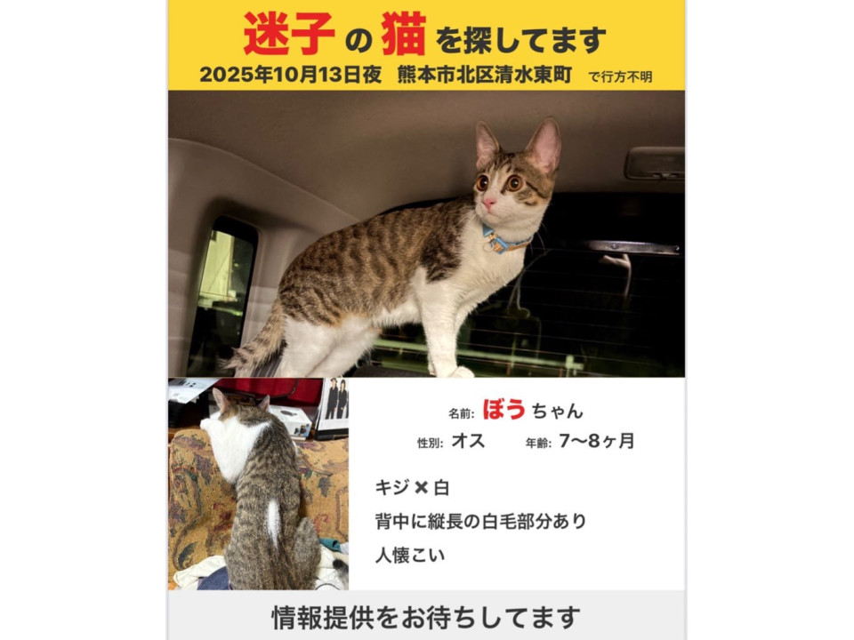 10月13日の夕方19時頃にいつも通り家を出て、その後帰ってこなくなりました。