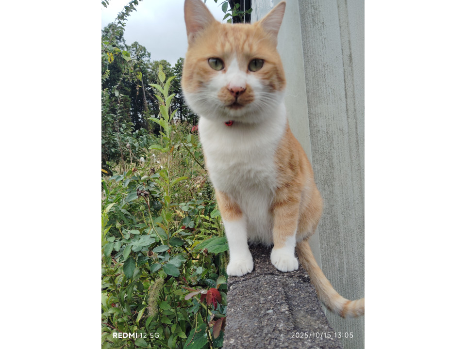 赤い首輪をしていましたが外れてるかもしれません。鼻のピンクの部分に黒い点々があります。