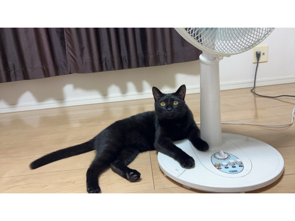 胸にうっすら白い毛が混じっていますが、ほとんど真っ黒な男の子です。