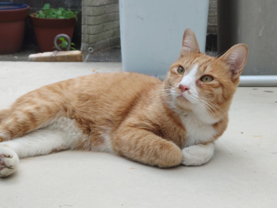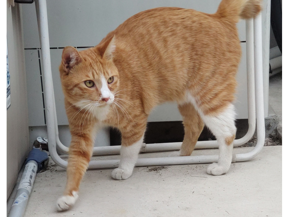 おそらく1歳くらいで、未去勢(耳カットなし)