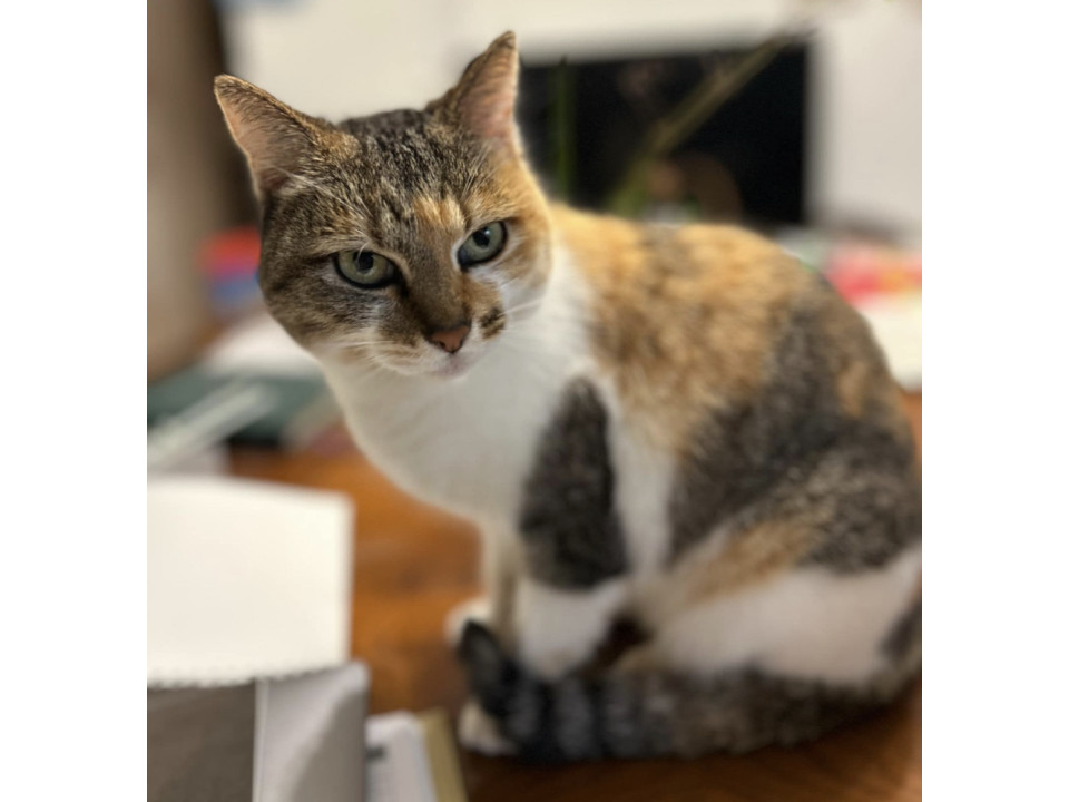8歳の三毛猫で、明るい茶色と暗い茶色