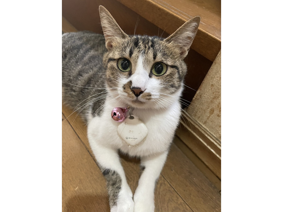 赤い首輪をしており、大きめな鈴とトラッカーをつけています。