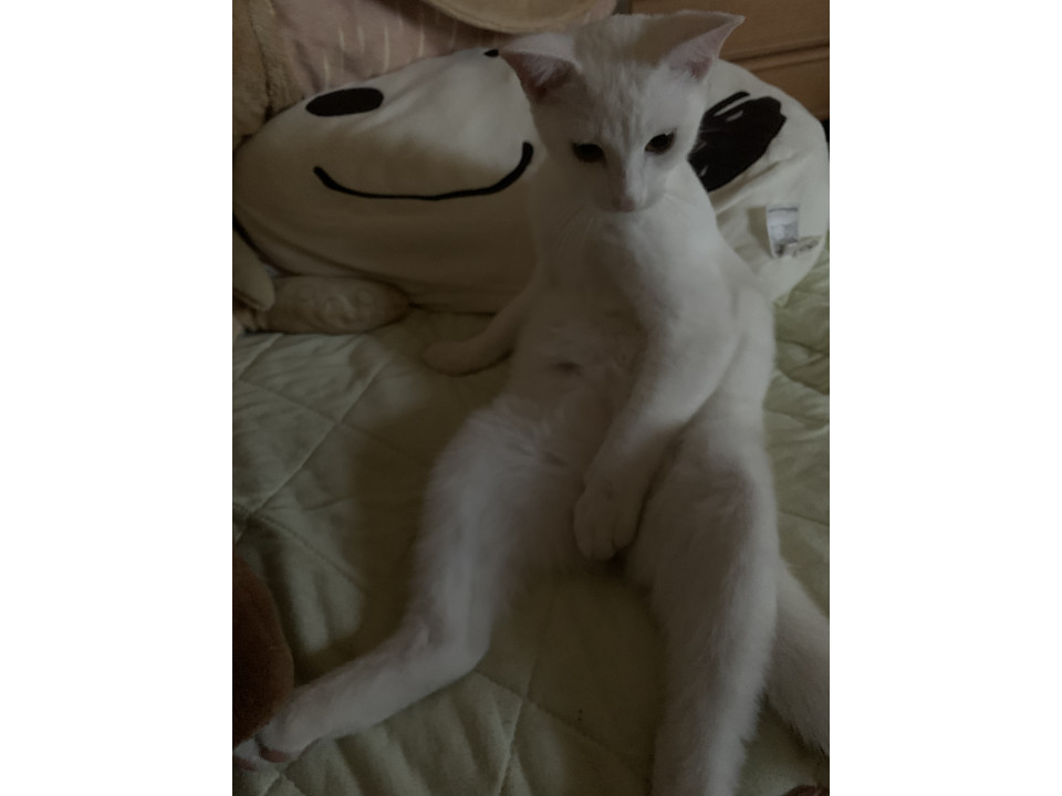 阿波市役所土成支所の近くの自宅の庭から居なくなりました。近所の白猫(オス)に縄張りから追い出された可能性があります。
