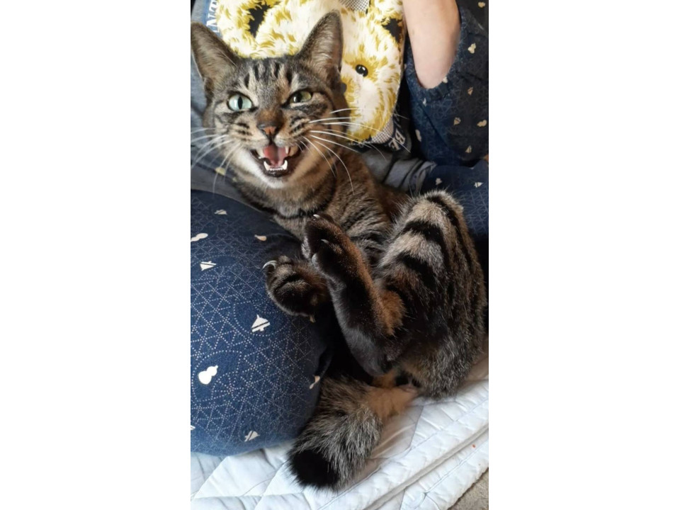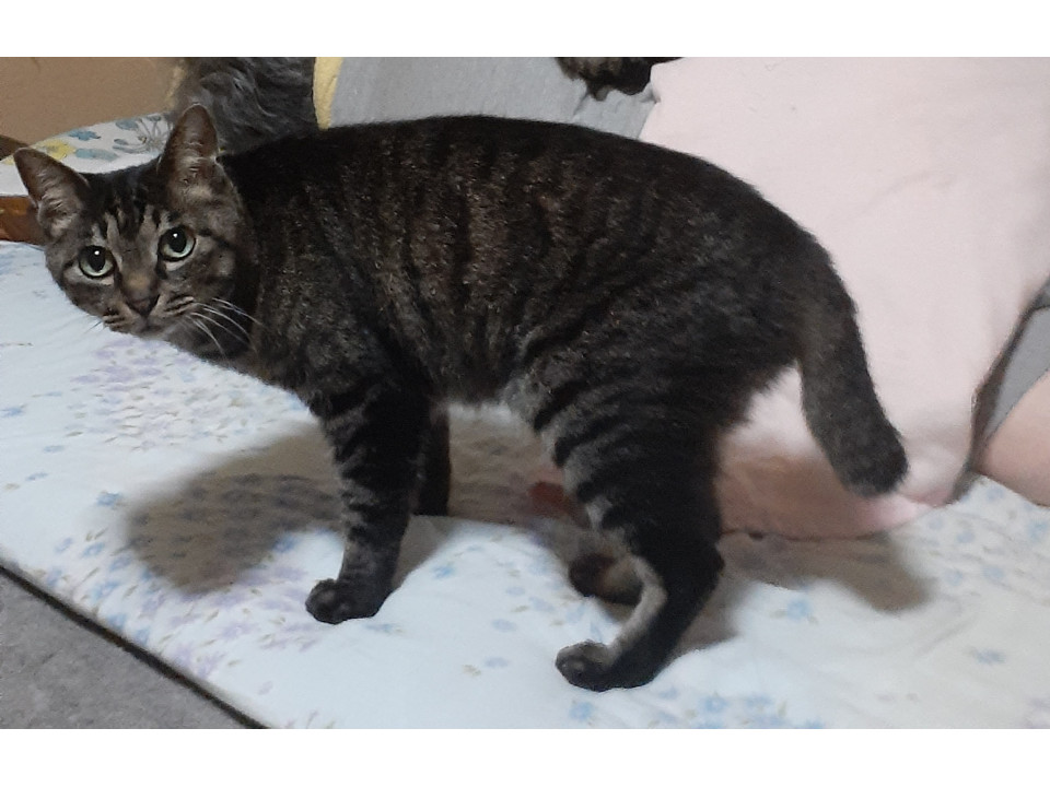避妊済みの女の子で、家族以外の人を怖がります。尻尾は少し短めです。