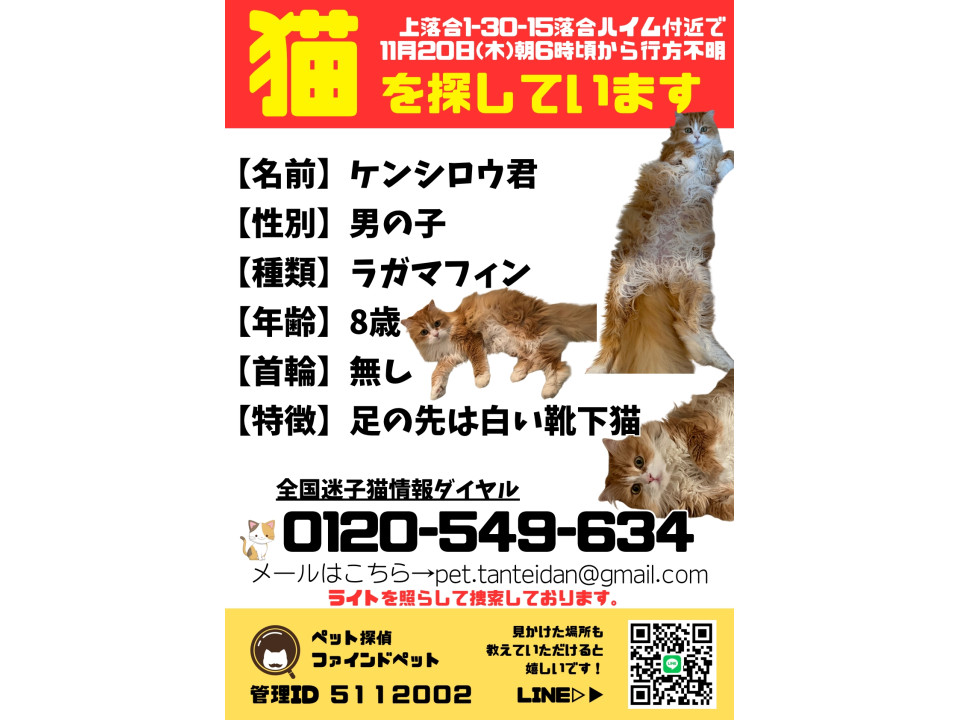 朝6時過ぎころ外出しようとしたところドアの隙間から逃げ出したと思われます