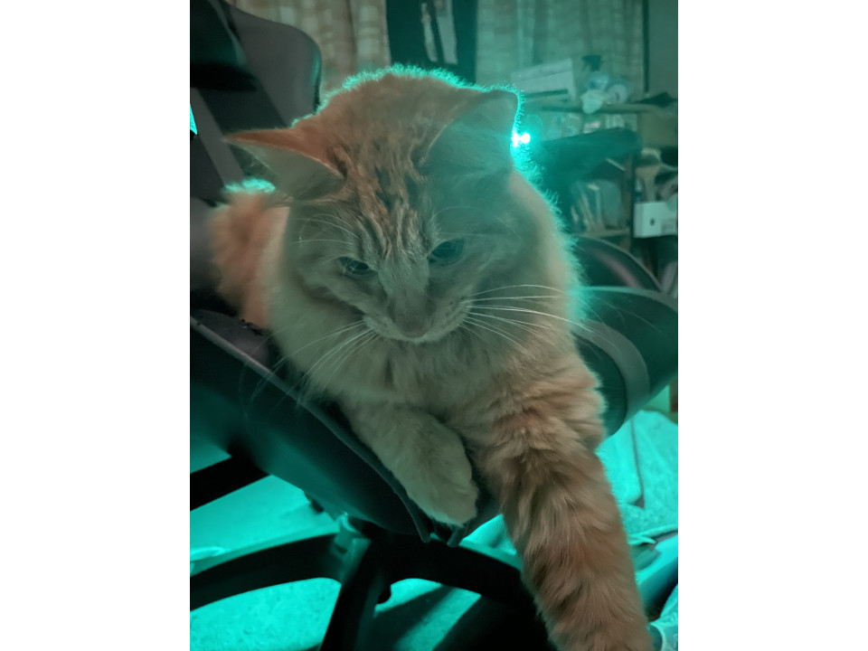 茶トラで長毛で尻尾が長くて良く触ったら角かく鍵尻尾です。見た目は長い尻尾です。首周りの毛がフサフサしてます。人懐こくて抱っこが好きです。