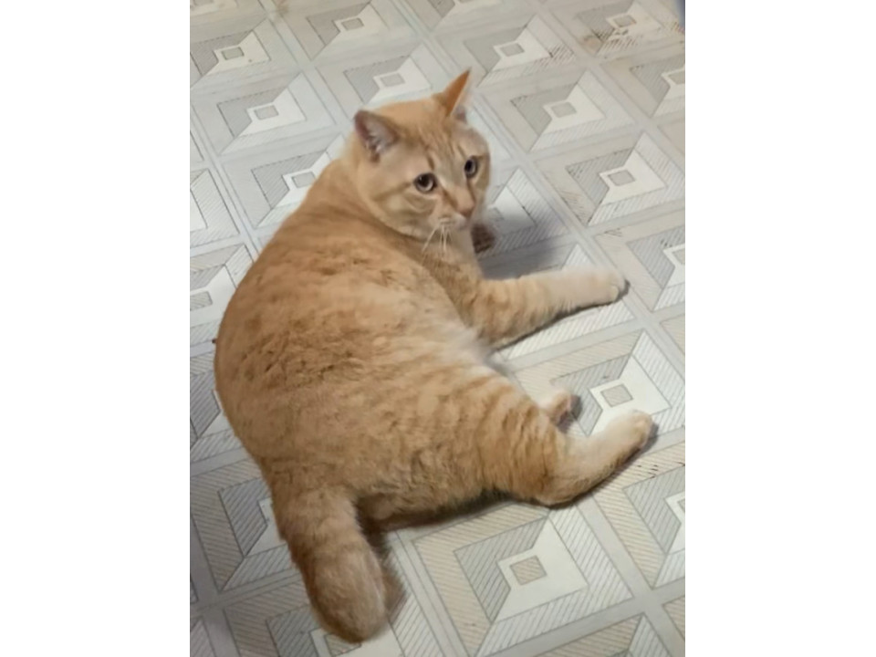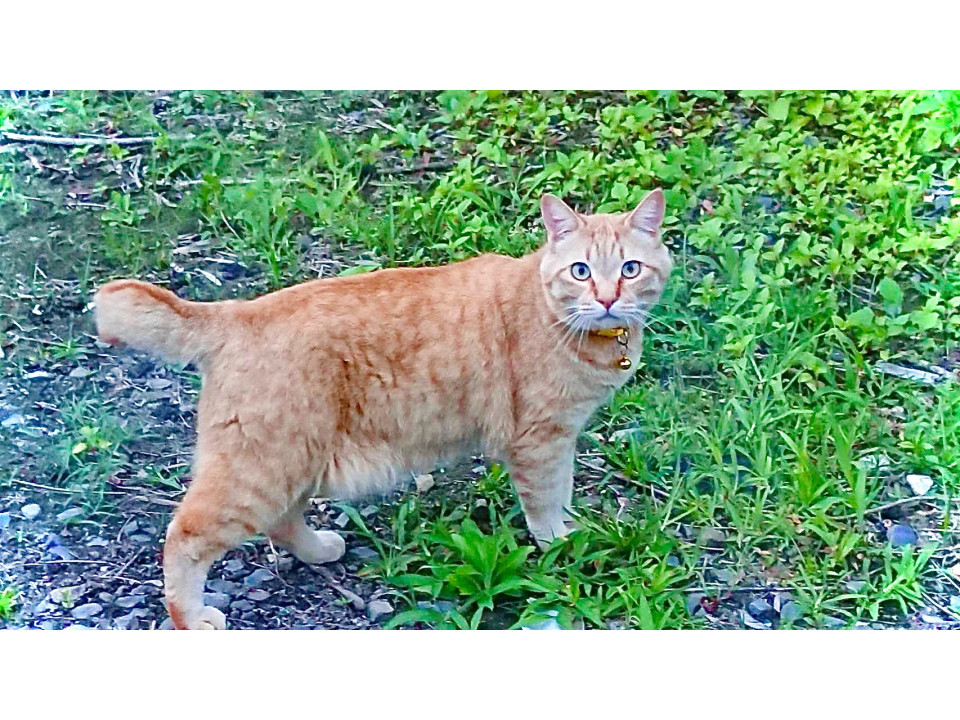 チャチャです。7歳の体型がデカく人懐っこい猫ちゃんです。首輪は青ですが…外れてる可能性があります。シッポは短く鍵シッポです