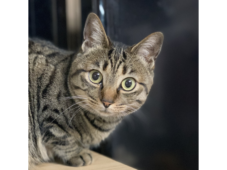 黄緑の目、丸顔、体格は小柄です。尻尾は中尾。鳴き声は高めです。