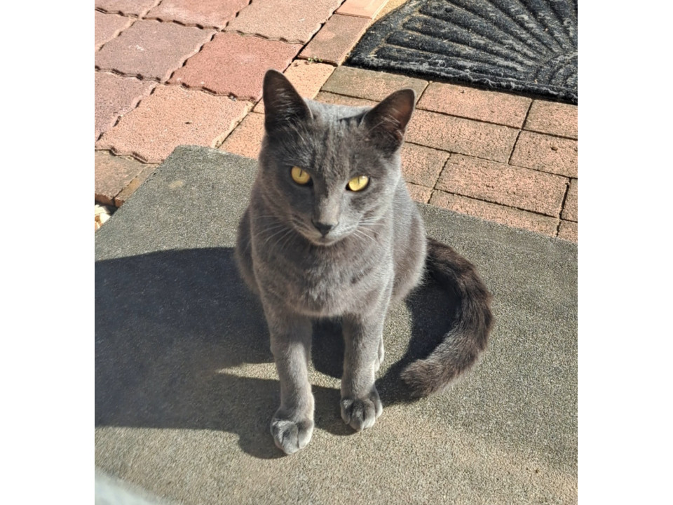 全身グレーのオス猫です。人慣れしていて足にスリ寄ってきます。
