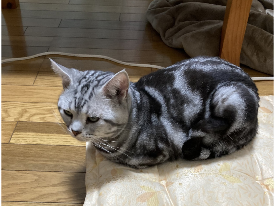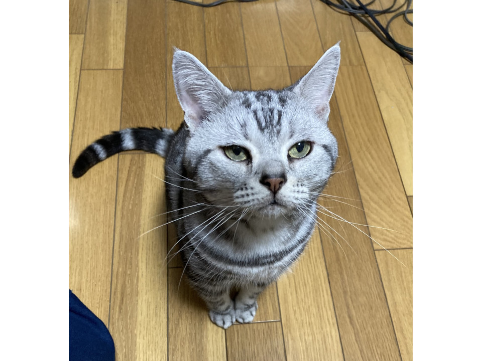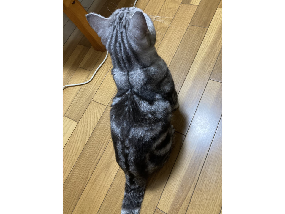 アメリカンショートヘアの男の子で、体格が小さい。首に首輪の跡らしきものがあります(不確定)とっても人懐こい。