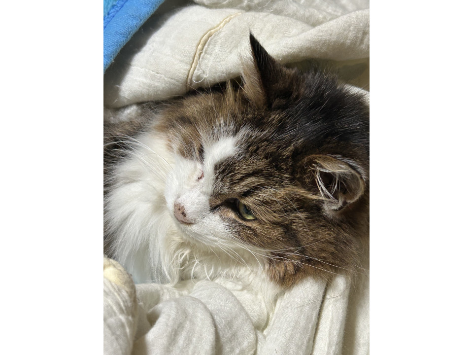 元々若い頃は家と外を行き来する猫だったのと人馴れしているのもあって外で出会う人に対して警戒心が薄く簡単に抱っこできてしまうほどなので、もしかしたら見かけた人に調子の悪そうな野良だと思われて保護されてしまった可能性も考えています