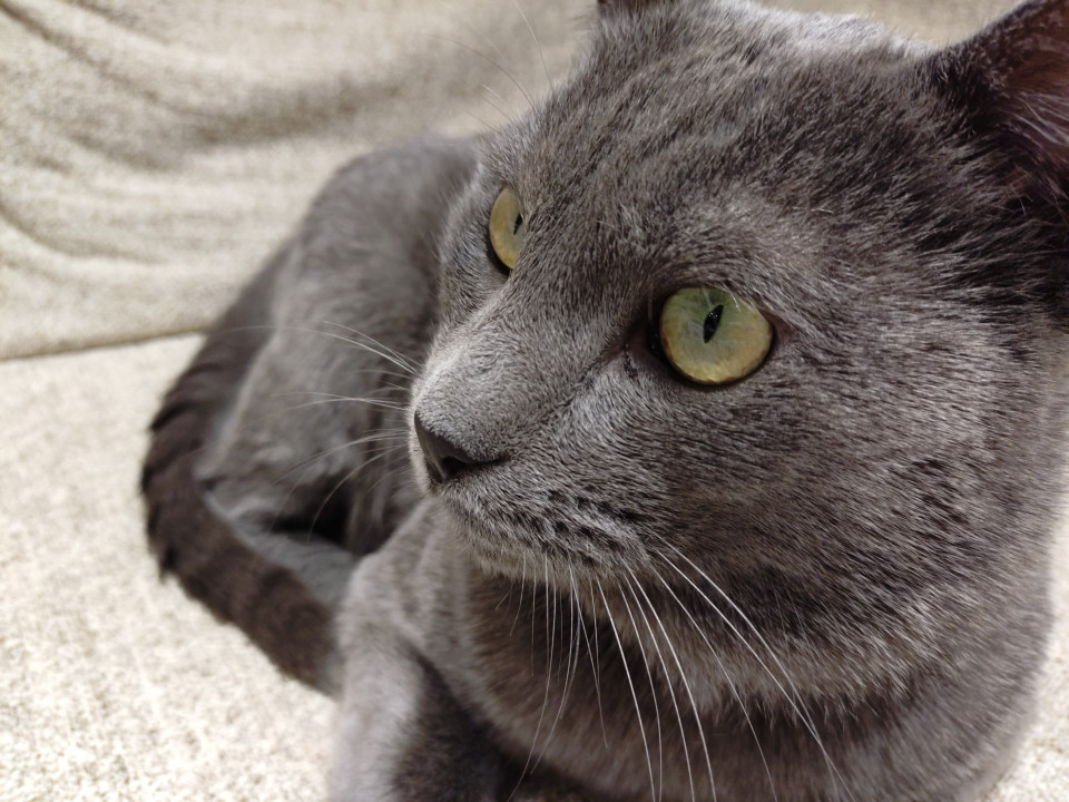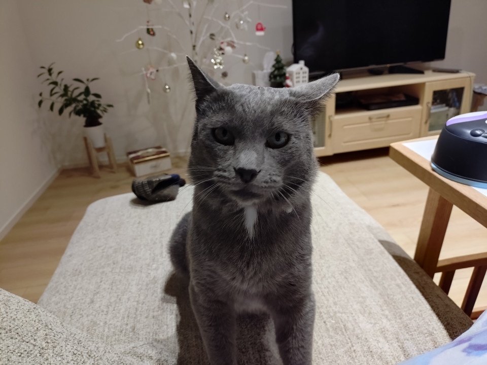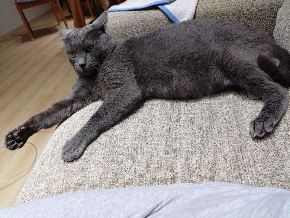 5キロのロシアンブルーに似た去勢済みのオス猫です。