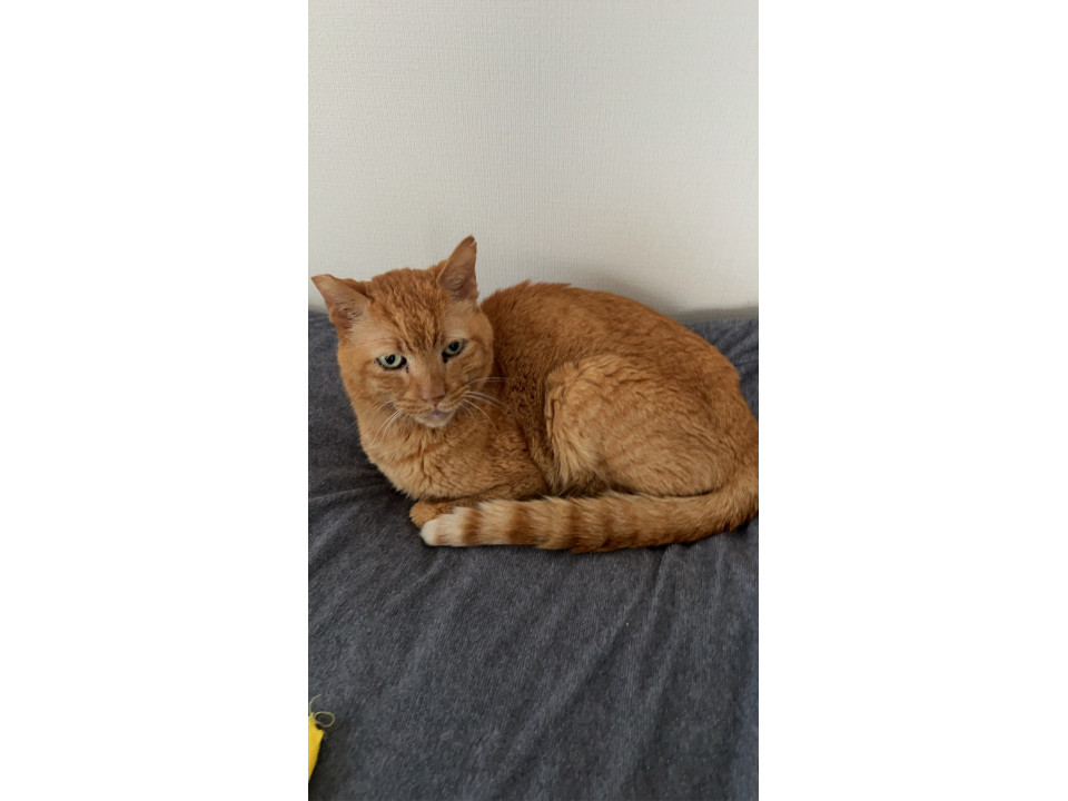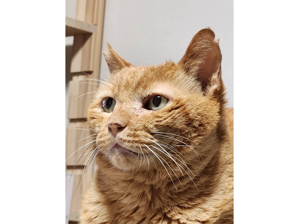 去勢済み ヨロヨロ歩く 両前足の1部毛がない 緑の唐草模様の首輪あり(外れている可能性もあり) チュールが好き 右耳さくらカット 左耳切れ目あり 目ヤニ多め