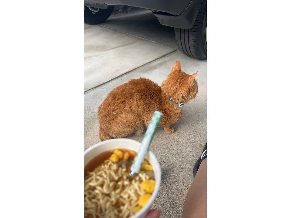 22日の14時頃に散歩に行ってから帰って来ていません。よく車の下で休憩しています。おそらく元地域猫です。人慣れはしてる方ではあると思います。餌の好き嫌いが激しいタイプです。