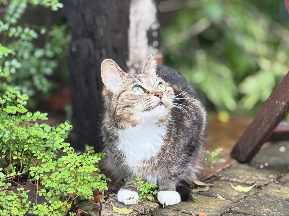 人見知りがちな子ですがミントちゃんっと呼ぶとじっと見つめます。白いソックスと緑色の大きな目が可愛いです。