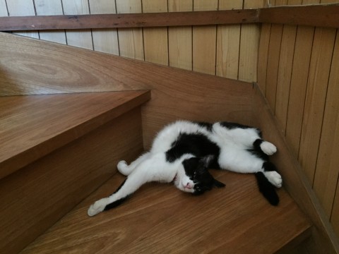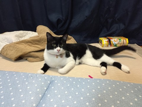 金目で白黒ハチワレ、尻尾は長い黒。いなくなった時は赤い首輪をしていました。細身です。