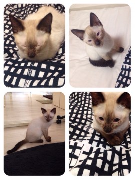 シャム風のMIXで耳が大きく瞳はブルーなのが特徴です。しっぽは長くて、耳や手足と同じ色です。