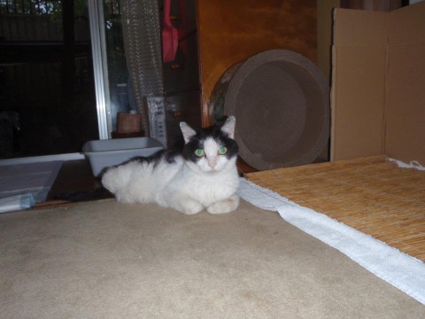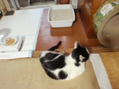 尻尾・後頭部-黒 手足・お腹-白 背中-黒まだら