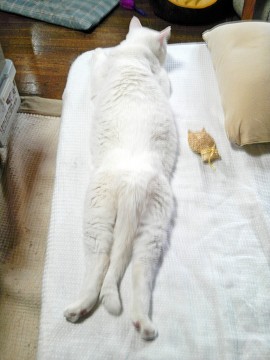 朝7時頃、縁側の網戸によじ登ったらしく、外れて驚いて走って逃げてしまいました。