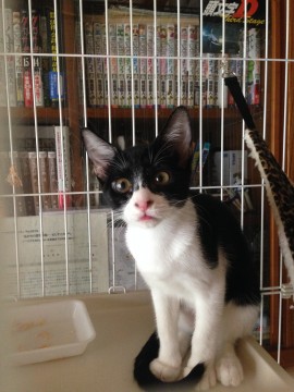 まだ4か月の仔猫で体重は1.8キロ、体長は20センチくらいで、尻尾は真っ直ぐで長いです。