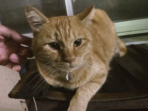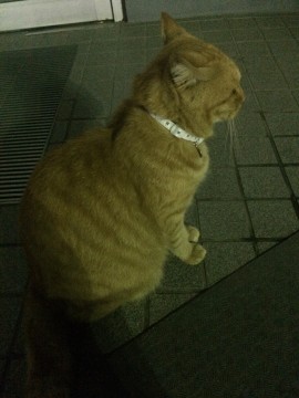 茶トラ、尻尾の先端が太くまん丸、白い首輪(セーフティー首輪のため外れている可能性有)