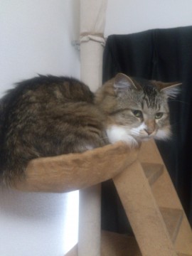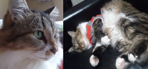 9/12(土)に自宅の網戸を外し、脱走しました。キジ白の半長毛で体重は4.5~5.5kgほどありますので、大きく見えます。