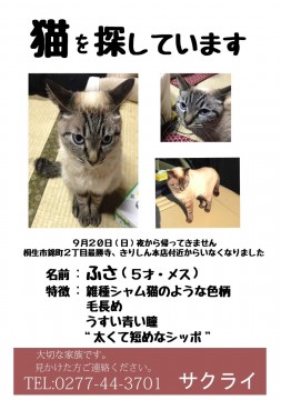 見かけた方、お心当たりのある方はどうかご一報ください。