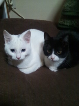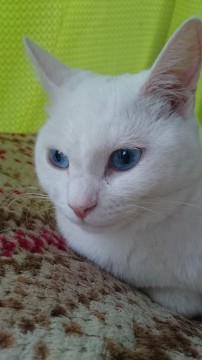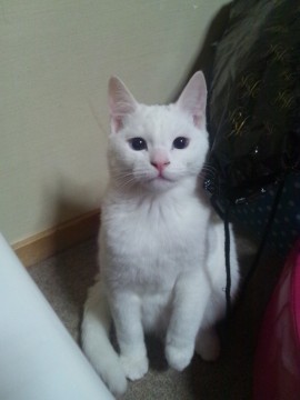 全身真っ白で頭に筆で書いたみたいな黒い毛が少しあります