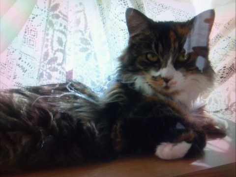 名前は「もか」です。柄は茶色の三毛で鼻の所が白です。