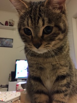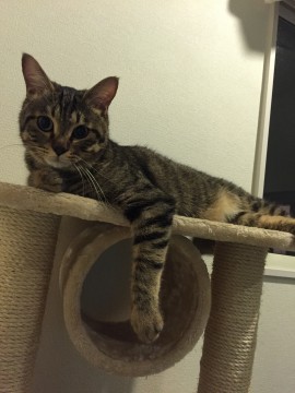 キジトラ 耳大きめ カギしっぽ お腹真っ白