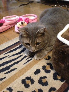 毛色:グレー多めのほんのり茶色がかっています。