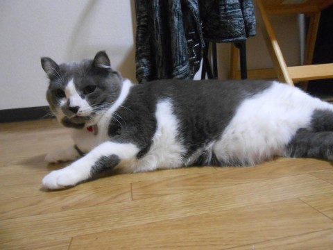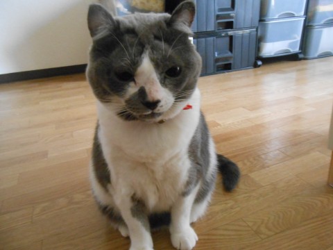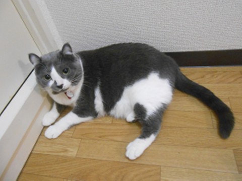 特徴はグレーと白の体色、耳が普通のネコよりかなり小さい。左の口の横にほくろのような点が二つ。小ぶりで丸い体型。♀。避妊手術済み。
