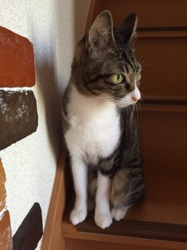 ハナはピンクで、キジの部分が多く足は靴下を履いたみたいに白いです。お腹も白い毛です。