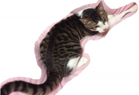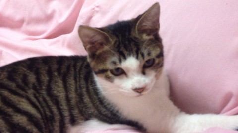特徴:こげ茶のシマシマ模様(お腹と股はまっ白ですが、胸元に模様あり)