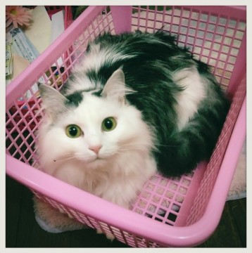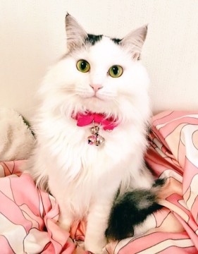 ★白と灰色の長毛(背中と尾に灰色の部分が多い)