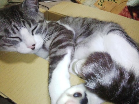 《毛色》お腹は真っ白 背中は黒灰のトラっぽい柄