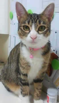 ・ピンクの首輪にピンクの名札とピンクの鈴付き(飼い主の名前と携帯番号が記載されてます)