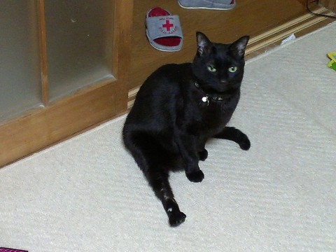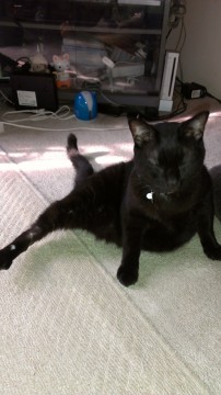真っ黒で尻尾が長く、後左足がありません。ハンデをもろともせず機敏に動きます。