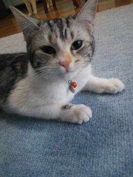 顔の灰色の毛が特徴で、性格は、臆病です。