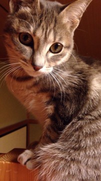 白グレーの縞ネコです。メス 2才 避妊済み。性格はおとなしくあまり泣きません。人にはなつきます。少し外国のネコの雰囲気です。尻尾は長いです。兵庫県川西市11/15(日)お昼頃からいなくなりました。