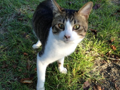 毛色も目の色も、尻尾も長く顔立ちもキリッとしていました。足元に来てスリスリ、喉ゴロゴロもしてました。