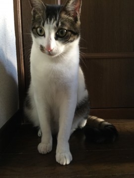 19日の朝に家から飛び出てしまいました。右頬のホクロの様な模様が特徴的です。オスで去勢済みです。1枚目の右側がタラちゃんです。