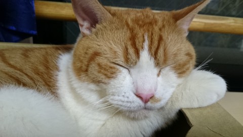 あまり鳴きませんが、たまに詰まったように「にゃっ」と鳴きます。