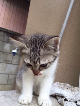 頭にMの模様、抱っこはキライ、臆病、未去勢、ヒモが好き、首輪は嫌がり外してしまう