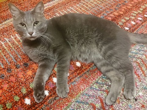 背中側はうっすらと縞模様の入ったグレイで、お腹側はアメリカンショートヘアのようなシルバーの縞々です。