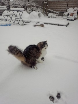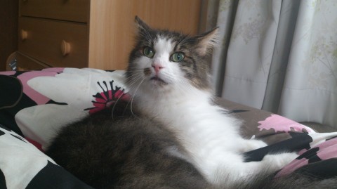 背中が黒、腹が白で口の右側に黒斑があります。ノルウェージャンなので大型です。